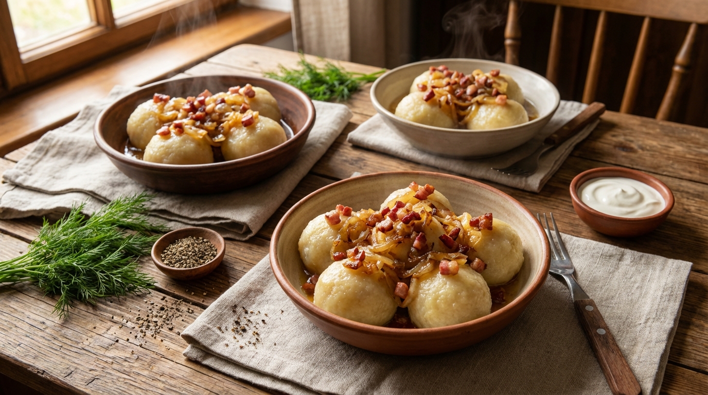 Serwowanie Kartaczy: Tradycyjny Obiad z Okrasą i Dodatkami