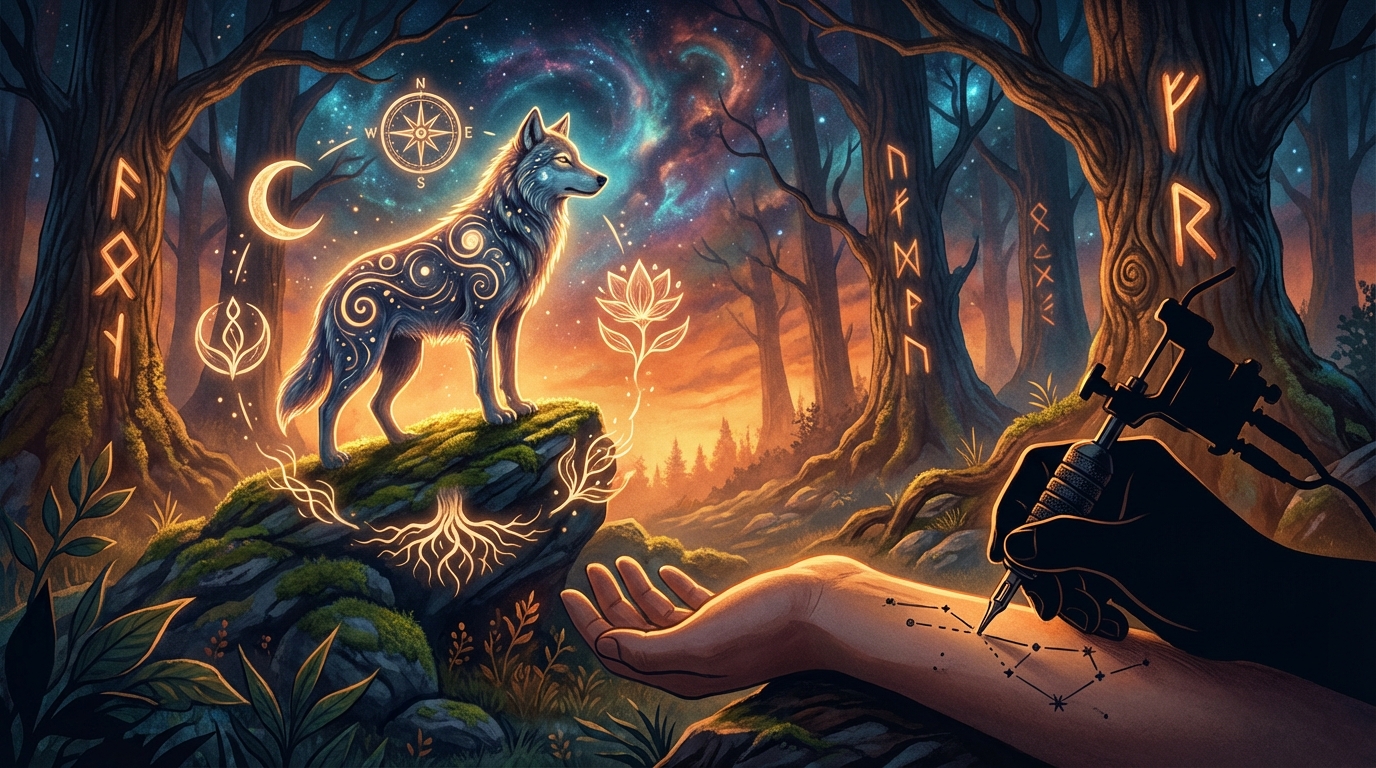 Wizerunek wilka w tatuażu kryje w sobie bogactwo symboliki, uosabiając przede wszystkim moc, oddanie, autonomię, męstwo i zmysłowość. Stanowi on połączenie dzikiej esencji z głębokimi więzami rodzinnymi lub stadnymi. Może również nieść przesłanie przewodnictwa, głębokiej wiedzy, swobody czy odporności, a jego ostateczne znaczenie jest kształtowane przez specyfikę wzoru i otaczający go kontekst. To niezwykle ceniony motyw, akcentujący zarówno determinację w obliczu wyzwań, jak i silne uczucia wobec bliskich.